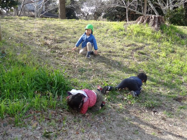 今日はにじもく。ほしぐみ、ひかりぐみは大房で遊びました。運動園地までゆっくりゆっくりお散歩しました。ちょっと先に休憩場所に着くとお迎え屋さんに来てくれる子どもたち。自分のリュックより他の子のリュックって軽く感じるのかな?