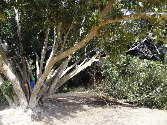こちらはお家や海賊船になっていたマテバシイですが、太い木が根元から倒れていました。火曜日の強風で倒れたのかな。倒れたままびくともしない木。こんなに立派な木が倒れるなんて風の強さに驚きます。