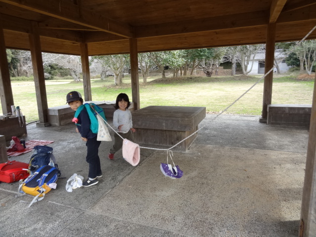 東屋でおうちごっこ。