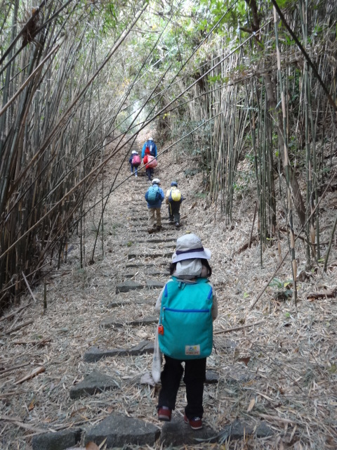 帰り途中で絵本「20ぴきのピクニック」を読みました。さあ、もうひと階段上って帰りましょう。