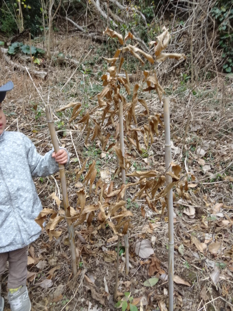 一年前に植えたクヌギは葉が茶色に変わり、すっかり冬仕様です。