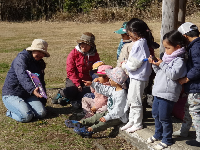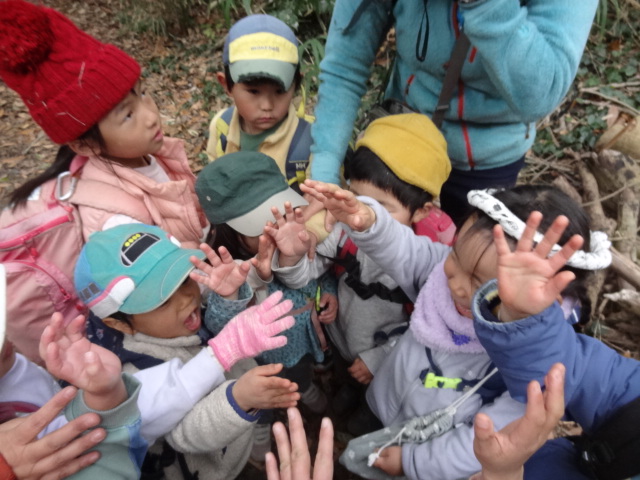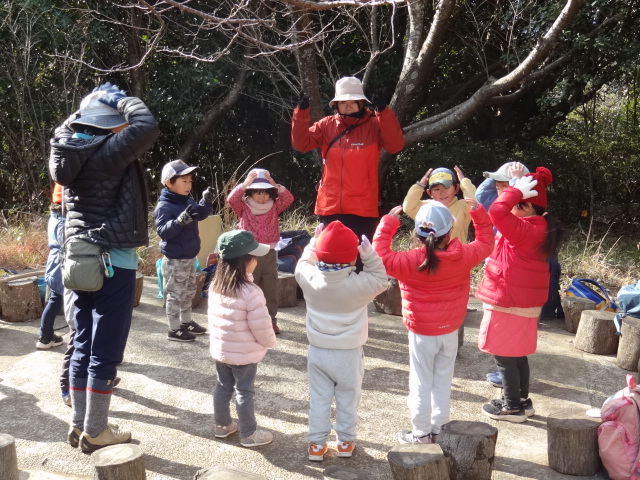 今日は星の子クラスと一緒に過ごしました。朝の会はじっとしていると寒いので体を動かしてから立ったまま挨拶、お返事をしました。