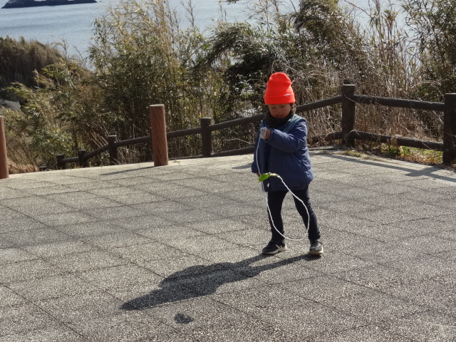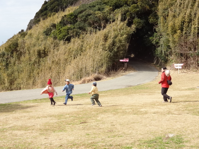お日さまは出ていますが、ちょっと弱めの今日です。うっすら寒いのです。海への石の階段がお日さまに温められて温かいことに気が付きました。座ってみるとじんわりあったか~い。確かめるように一段一段、降りていくほしぐみさん。「海がキラキラだよー!」