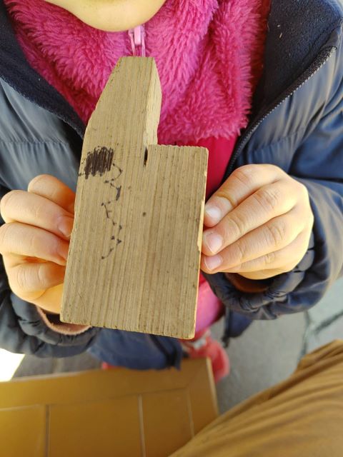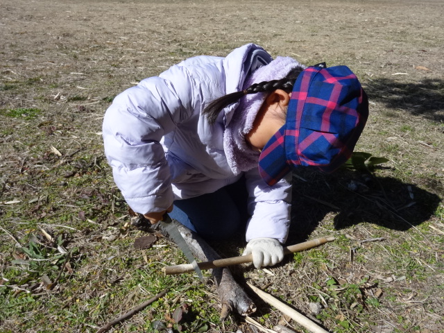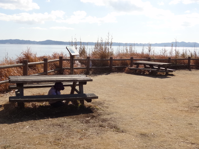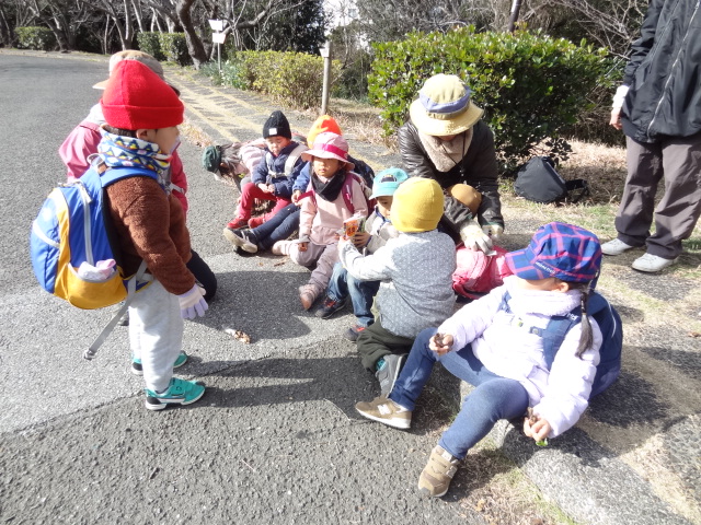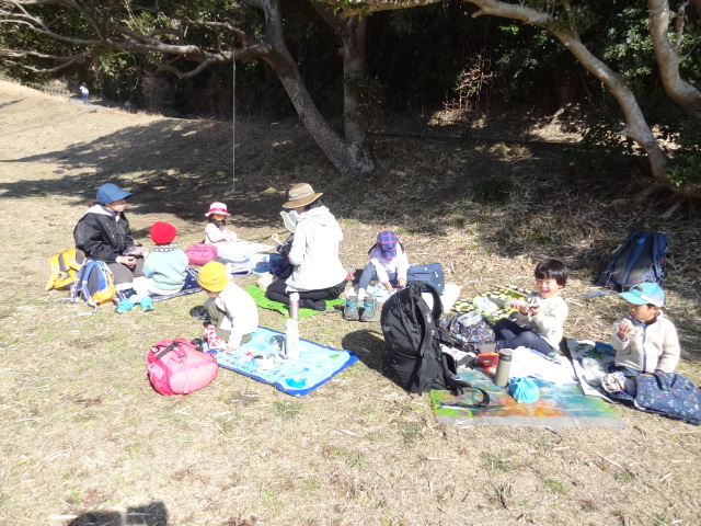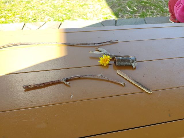 海岸園地はお日さまがぽかぽか。東屋でおうちごっこ。トランシーバーを作ったり、春を見つけたよ。そしておままごとに使った道具。