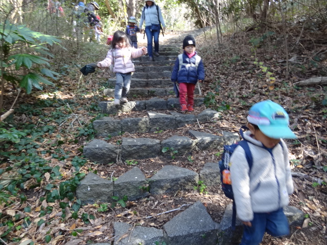 お散歩の階段も自分の足でしっかり歩き、「山登りの練習をしないと!」と御殿山登山に向けて頑張っている姿もありました。
