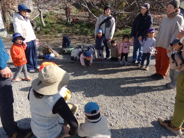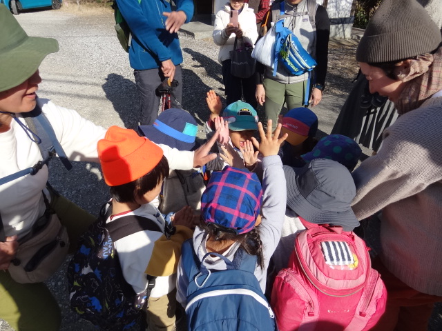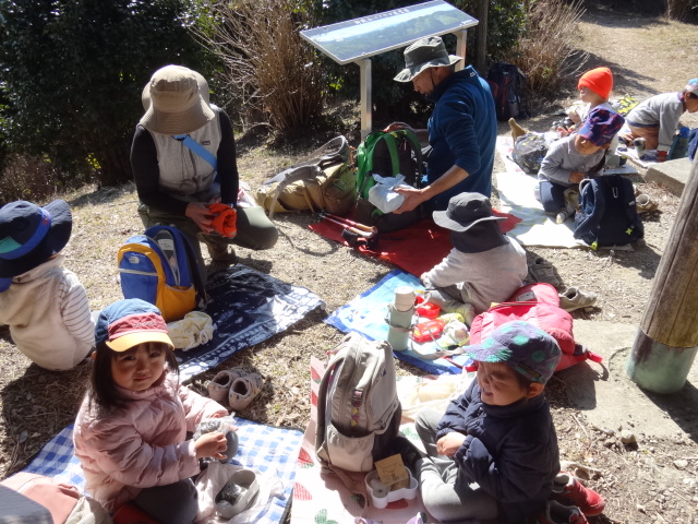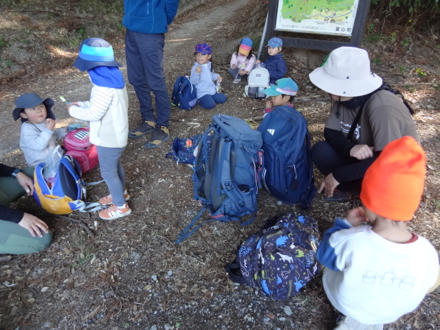 ほしぐみの登山の日です。ほしぐみは御殿山に登ります。初めての山登りはおやつが持ってこられる特別な日です。ドキドキとワクワクがいっぱいですね。今日はとても暖かくみんなの服装もいつもよりは薄着になっていました。