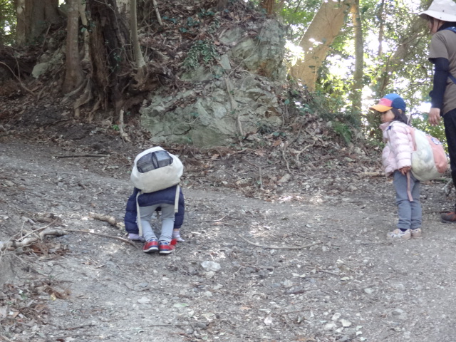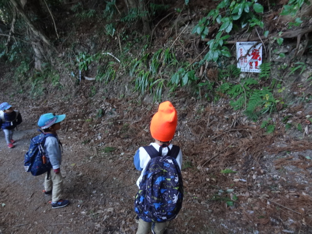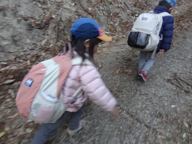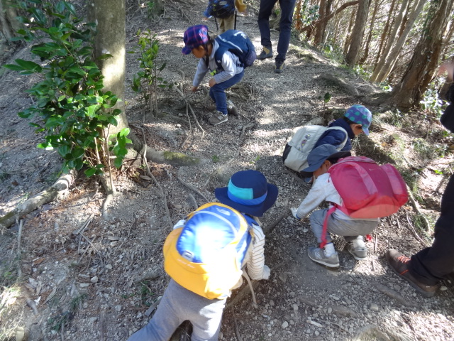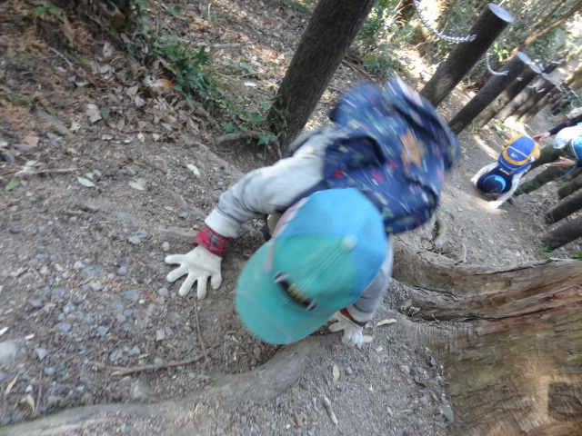 そして下山です。大きな階段も、滑りやすい下り坂も全身を使って一歩一歩下りてきました。今日のズボン・・・お尻大丈夫だったかな・・・子どもたちが必死に頑張ってきた証です。