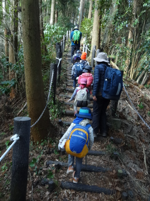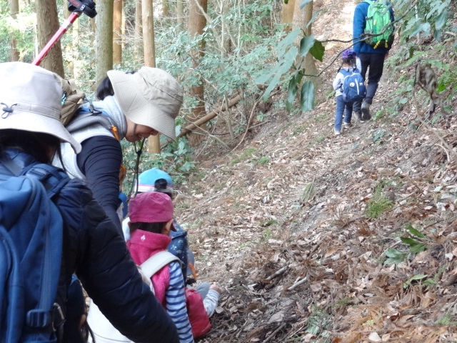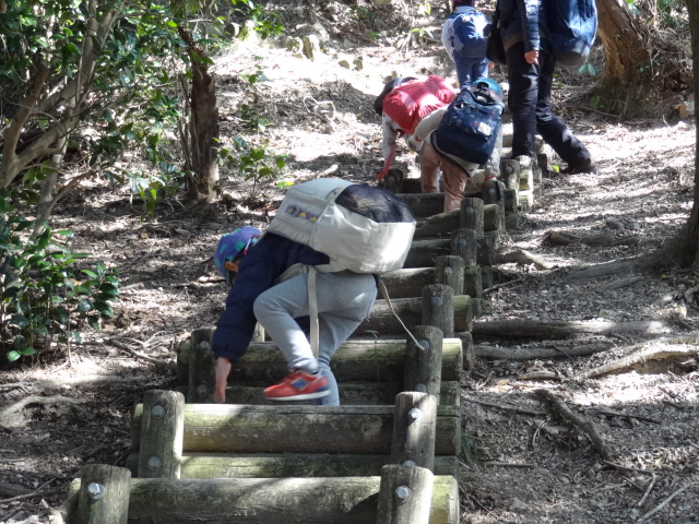 上り始めは上り坂が続きます。「もう疲れた・・・」と座り込んでしまいました。上から聞こえる「がんばれー!」の声。気持ちを奮い立たせて登ります。