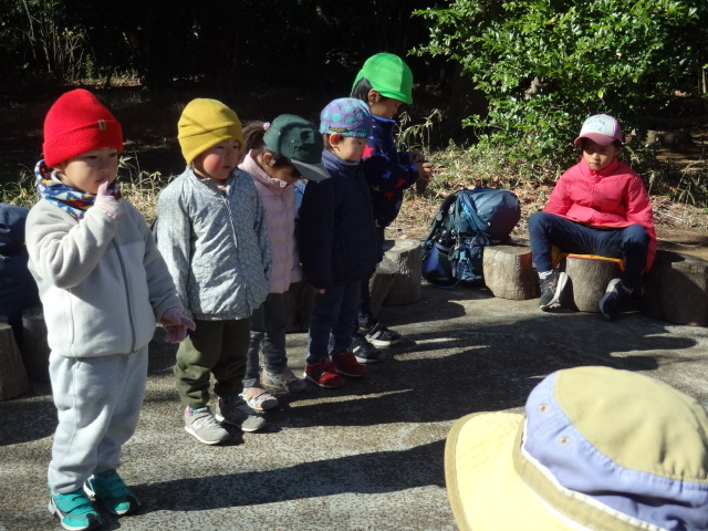今日は気温が上がらない予報ではありましたが、朝からお日さまが降り注ぎ暖かさを感じる日でした。朝の会では、今日やること、ほしぐみの山登りの話、にじぐみ、ひかりぐみの日の話をしました。