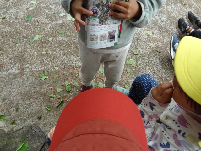 今日の朝の会では昨日見つけた”春”を教えてもらいました。「虫がいたよ。」「お花が咲いていたよ。」図鑑を見せながら見つけた虫を教えてくれた子もいました。
