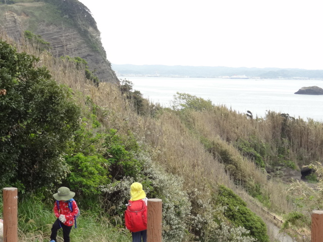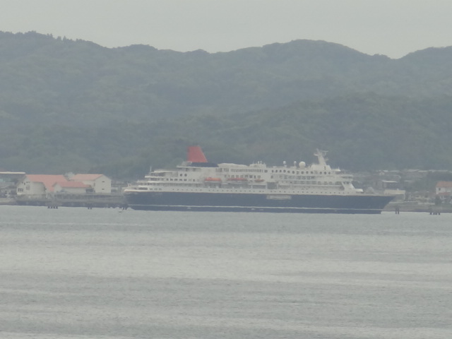 今日はどこに春を探しに行こうかな。そして今日は5月に引退が決まっている客船にっぽん丸が館山夕日桟橋に寄港しています。館山に寄港するのは今日が最後だそうです。海に見に行ってみよう!見えるかな~。南芝生園地から見て見ると、遠ーーーくに見えた青い船、これがにっぽん丸。みんなもわかったかな。