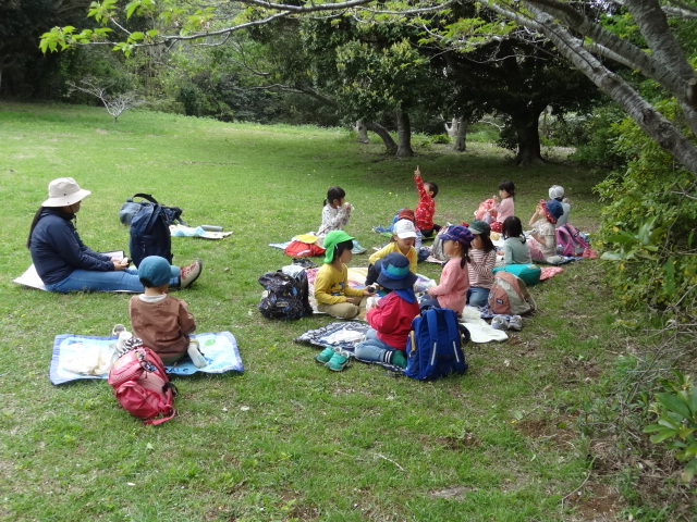 今日はビジターセンター前広場まで行ってからおむすびを食べました。