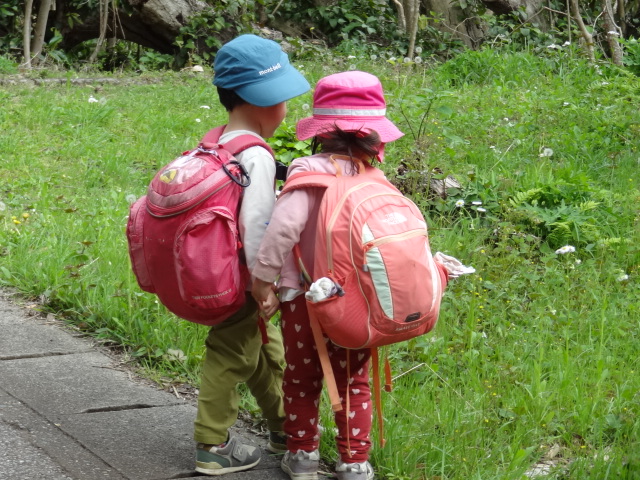 帰り道。笑いあっていたらどんどん楽しくなっていたね。新たらしいお友達とも手と手を握って元気に帰ろう!