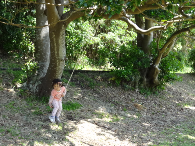 ブランコが大好きですね。今日のブランコの枝は自分でのこぎりで切りました。