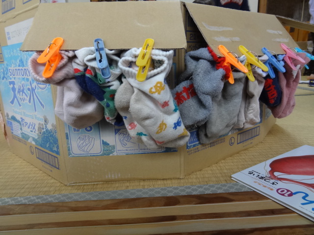 今日はなおぴーとわらべうたを楽しむ日です。なおぴーとの約束の時間まで自由遊び。おうちごっこしよう!とおうちを運んできて設置して、キッチン、お風呂、洗濯機などなど、色んな部屋になります。今日は靴下の洗濯物がいっぱい!ペアにして上手に干してあります。