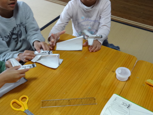 にじぐみさんのちょっと難しい紙工作。今日は発射台からシャトルが飛んでいました。