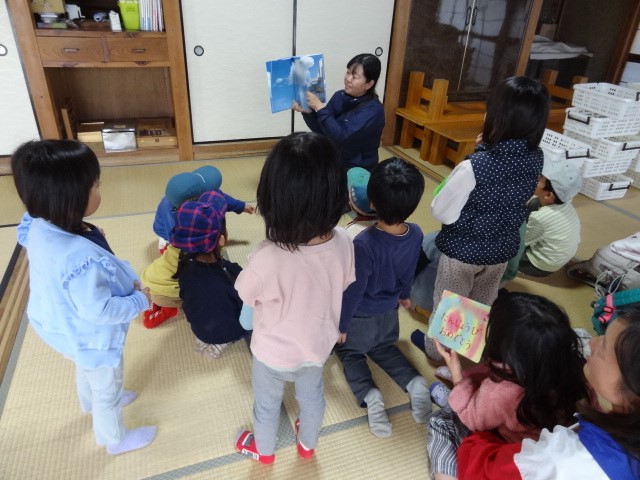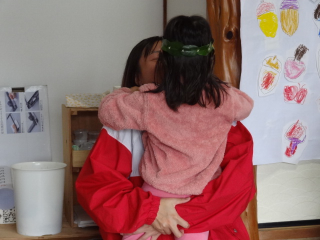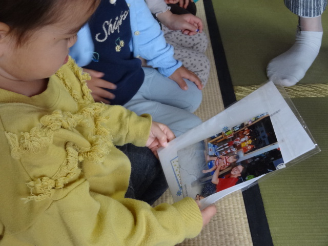 誕生会の後は遊びの時間。雨が降っていなかったので外へも行きました。上着を着ていない子どもたち。「寒くないのー?」と聞くと「全然寒くないよ、暖かい!」との返事が返ってきました。ここ数日で、寒さに強くなったのかな。