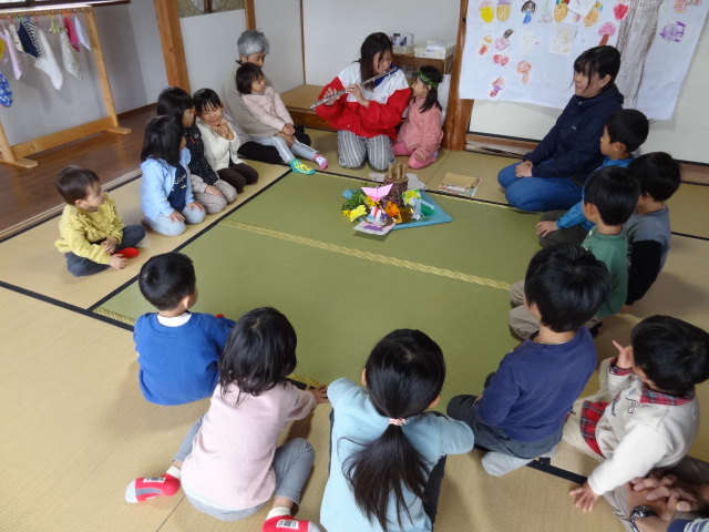 最後にお母さんがフルートを演奏してくれました。♪はっぴーワルツ、♪山の音楽家、♪きのこ、フルートに合わせてみんなで歌いました。お誕生日、おめでとう!!!