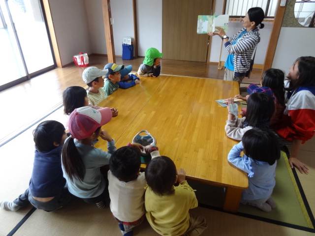 絵本「くも」を読みました。色んな雲があんなふうに歩き回っているのでしょうか。今度よーく見て見ようね。来週のお天気はどうかな?そろそろ青空が見たいですね。来週もたくさん遊びましょうね。