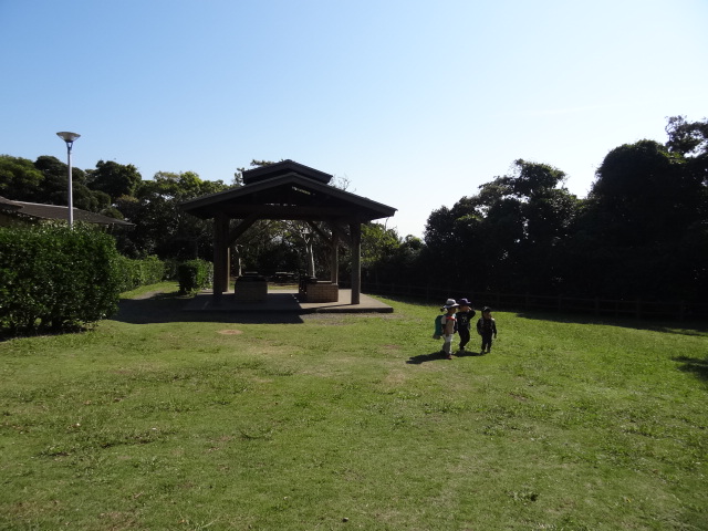 お次はお留守のへびマンションを通り、親水広場の坂道を上り、第2キャンプ場に向けて階段を上っていきました。この階段を上ってさらに少し歩くと着いた場所はビジターセンター前広場。「ここに着くんだ!」と、また自分の中の大房の地図が広がったかな?