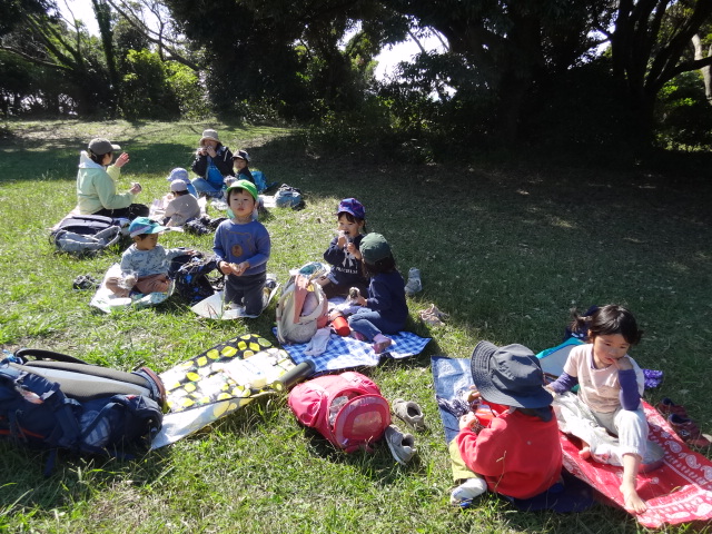 ビジターセンター前広場でお昼にしました。