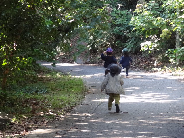 帰りもまだまだ元気いっぱい。みんなよりも早く着いた子たちが「迎えに行ってくる~」と走って迎えに行きます。