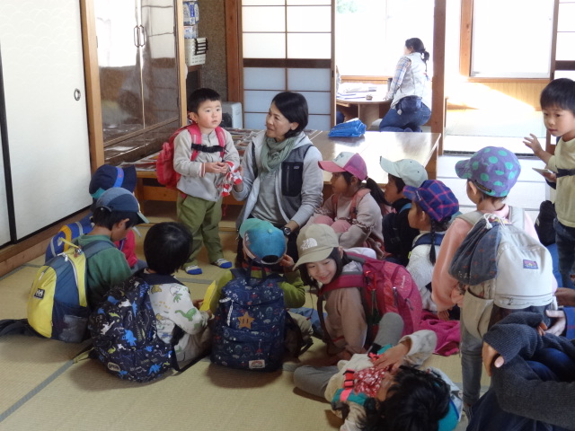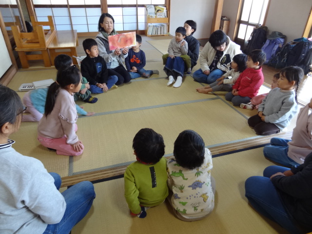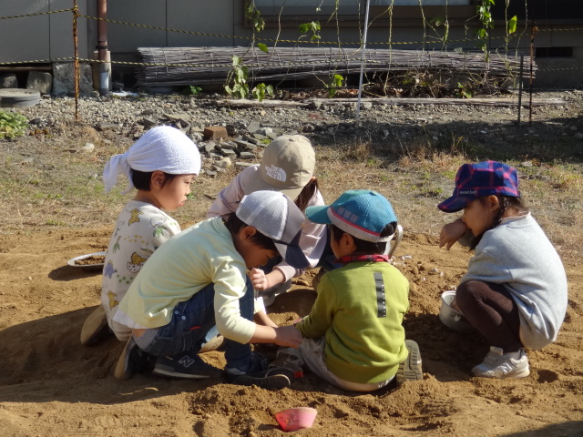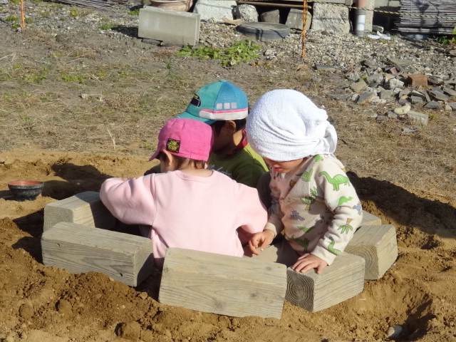 にじみ絵にオイルを塗ったら、自由遊びの時間です。午前中はまだ風もなく、室内よりも外の方がぽかぽかと暖かかったですね。