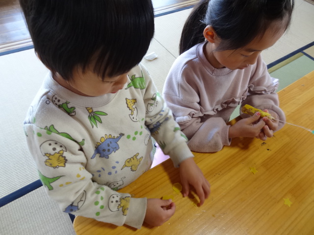蜜蝋キャンドル作りの時にお休みしていたほしぐみさんには、にじぐみさんが最初から最後まで付いていてお手伝いをしてくれました。