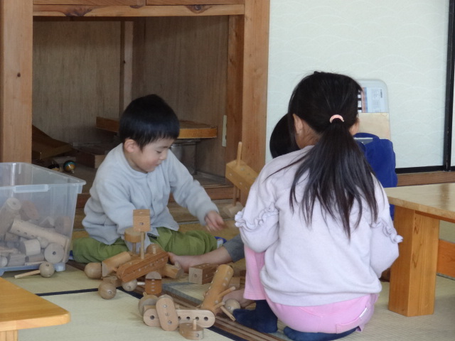 室内では木のおもちゃや折り紙を楽しんでいました。