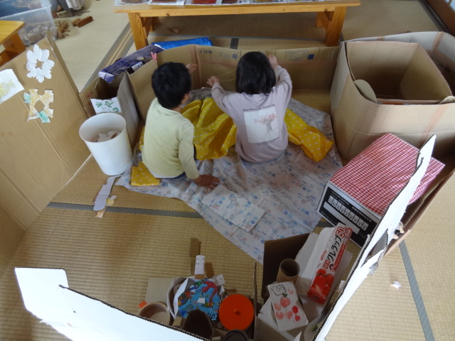 製作が終わった後もいっぱい遊びました。おうちごっこをしたり