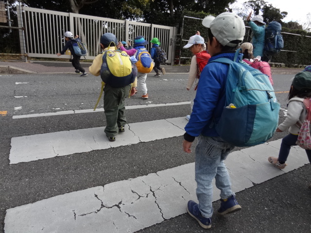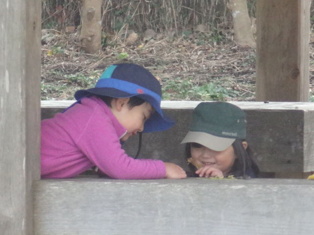 朝は寒くても、日中はお日さまがぽかぽかと暖かく上着を脱いで遊んでいました。今日も楽しかったね。明日もいっぱい遊びましょうね。