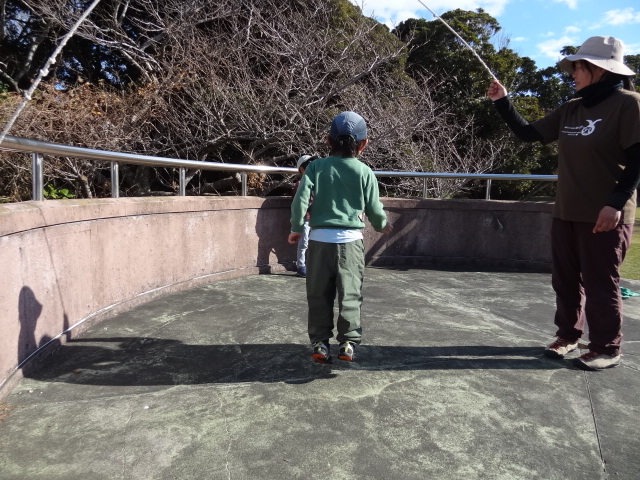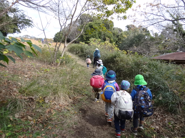 ビジターセンターからトイレに行く途中にあるこの階段です。「どこへ行くと思う?」と子どもたちに聞いてみると、「海岸園地かなー」「西芝生園地じゃない!?」「大房岬自然公園の近くの公園!」どこへつながっているかな~